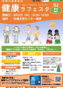 笠間市で開催する「健康ラフェスタ」「オンライン健康講座」などのイベント情報を配信しています。お気軽にご参加くださいませ!